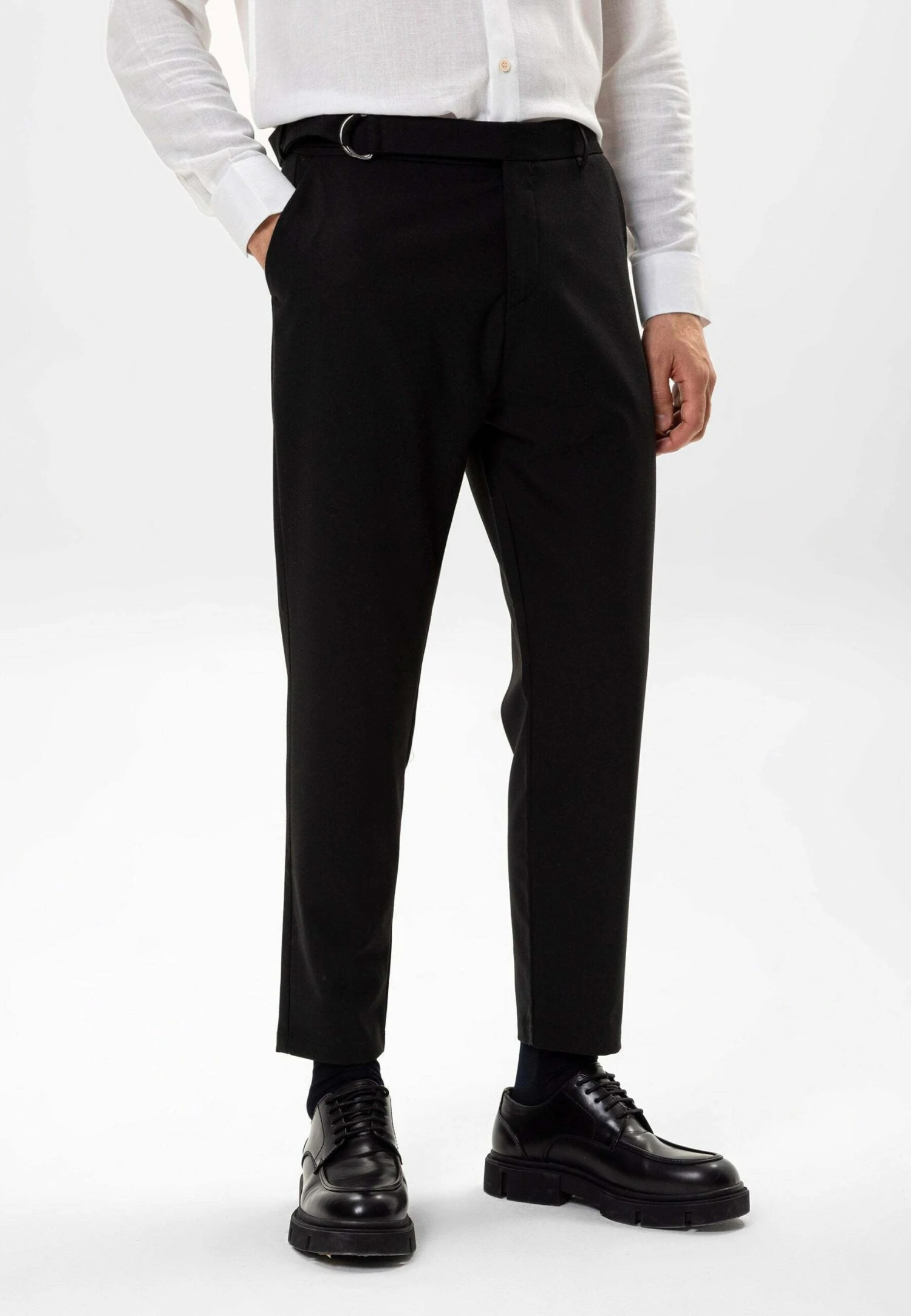 High Waist Belted ChinoBlack Uomo Pantaloni AI721A002-Q11